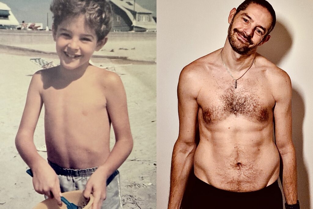 Let’s say I was seven (ish) in that photo on the beach. I’m 48 as I sit here typing this out. After seeing that photo I had an idea that I thought might be fun. I decided it would be a great idea to try to replicate that photo and have a side-by-side progress photo, but with 40 years between the before and after. I figured this could be funny and also therapeutic for me. Clearly I’m not actually comparing the body of a 7 year old with the body of a 48 year old. That’s not the point. The subtle point, in my mind, was to make a small gesture to myself in terms of the progress I’ve made with my own body image struggles by leaning in to the fact that it’s been 40 years in the making.